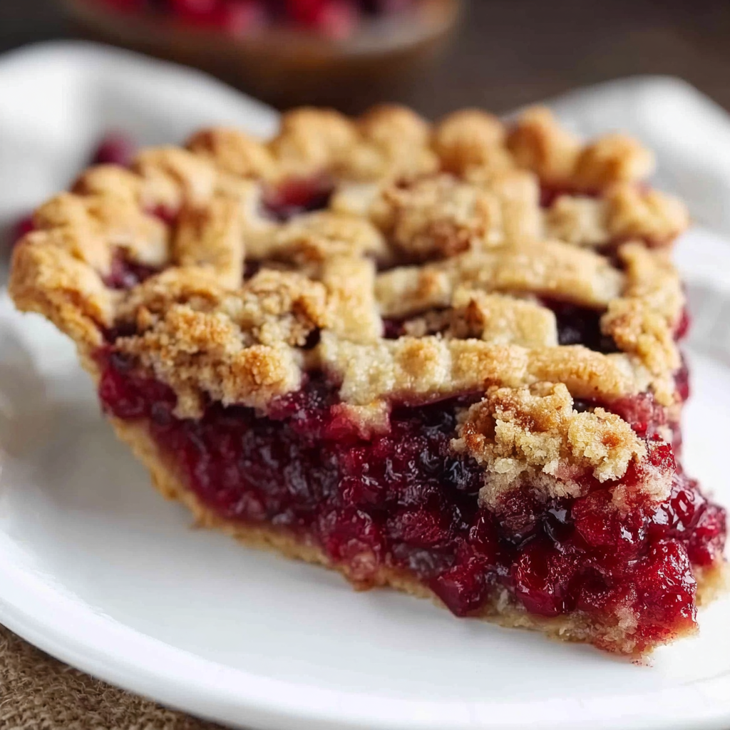 The crisp crust, juicy cranberry filling, and crumbly nut topping come together beautifully, creating a dessert that’s as gorgeous as it is delicious.