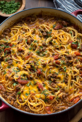 - Top with the savory ground beef mixture.
